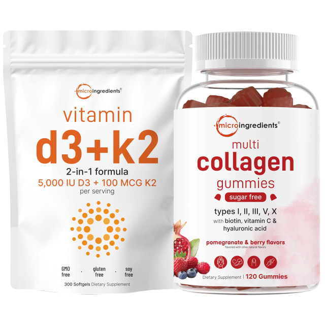Micro Ingredients Vitamin D3 5,000iu + K2 100mcg Softgels & Multi Collagen Peptides Gummies Bundle Pack | Essential Sunshine Vitamins | Type I,II,III,V,X Protein with Biotin, Hyaluronic Acid, & Vitami is part of our Beauty Gummies collection, selected based on ingredient quality, user reviews, and value for money.