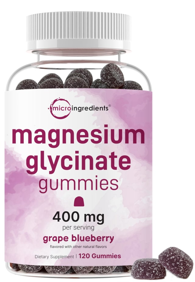 Magnesium Glycinate Gummies 400mg Per Serving, 120 Count | Natural Grape Blueberry Flavor | Potent Elemental Form + Chelated for High Absorption | Healthy Muscle, Bones, & Mood Support Supplement
