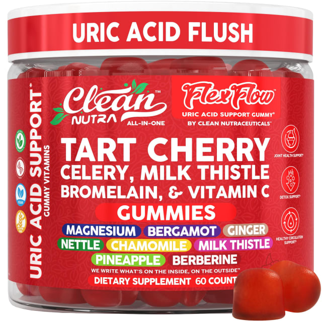 Clean Nutra Tart Cherry Gummies Uric Acid Flush Celery Milk Thistle Bromelain Vitamin C Magnesium Citrus Bergamot Ginger Stinging Nettle Leaf Chamomile Berberine Quercetin Support 60 Gummy Vitamins