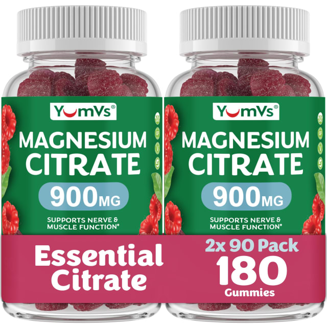 YUM-V'S Magnesium Citrate Gummies – 900mg Highly Absorbable Magnesium Gummies for Women & Men to Support Nerve, Muscle & Enzyme Function – Gluten-Free, Kosher & Raspberry Flavor 90 Count (Pack of 2)
