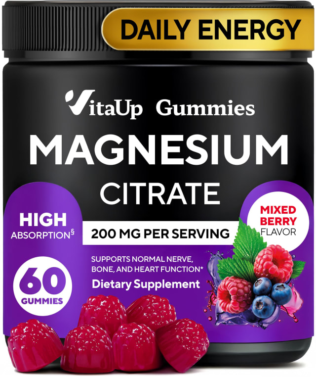 VitaUp Magnesium Citrate Gummies 200 mg – High Absorption Magnesium Gummies for Women & Men – Chewable Supplement for Adults to Support Normal Nerve, Bone & Heart Function – Vegan Chews, 60 Count