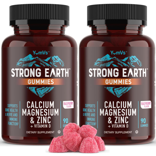 YUM-V'S Strong Earth Calcium, Magnesium, Vitamin D3 Gummies - Vitamin Gummies Calcium Supplement for Strong Bone Health Gummies - Kosher 90 Count (Pack of 2)