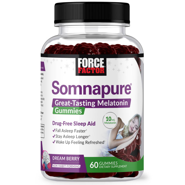Force Factor Somnapure Gummies with Melatonin 10 mg for Adults, Non-Habit-Forming, Natural Sleep Aid
